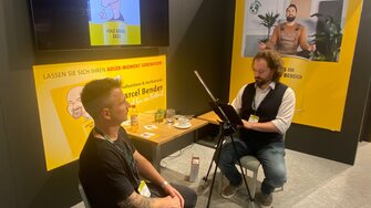 Na veletrhu Holz v Basileji byla trendovou barvou žlutá! „Co je na tom tak zvláštního?“ ptali se mnozí při pohledu na velký dav kolem stánku B68: tam se umělec oháněl svým pohotovým perem pro společnost ADLER - a rozesmíval hosty svými karikaturami z plechovky.