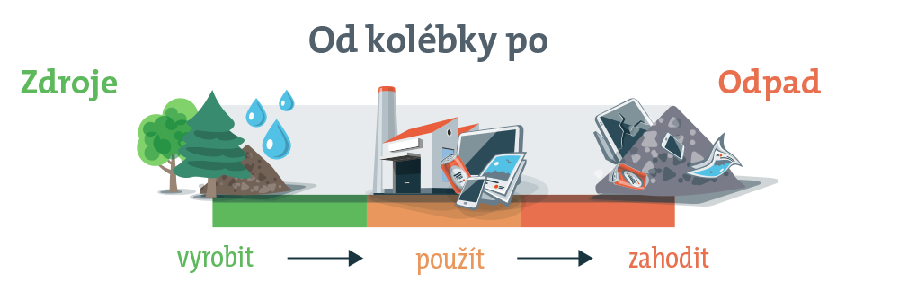 Na konci životního cyklu produktu se zdroje nezničí, ale vrátí se do cyklu. Využívání zdrojů a vznik odpadu jsou co nejvíce minimalizovány.