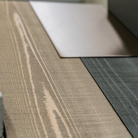 V kolekcích ADLER Woodboards do interiéru jsou kombinovány dřeviny mořené do různých odstínů s dalšími materiály, jako jsou madla, potahy čalounění nebo barvy stěn.