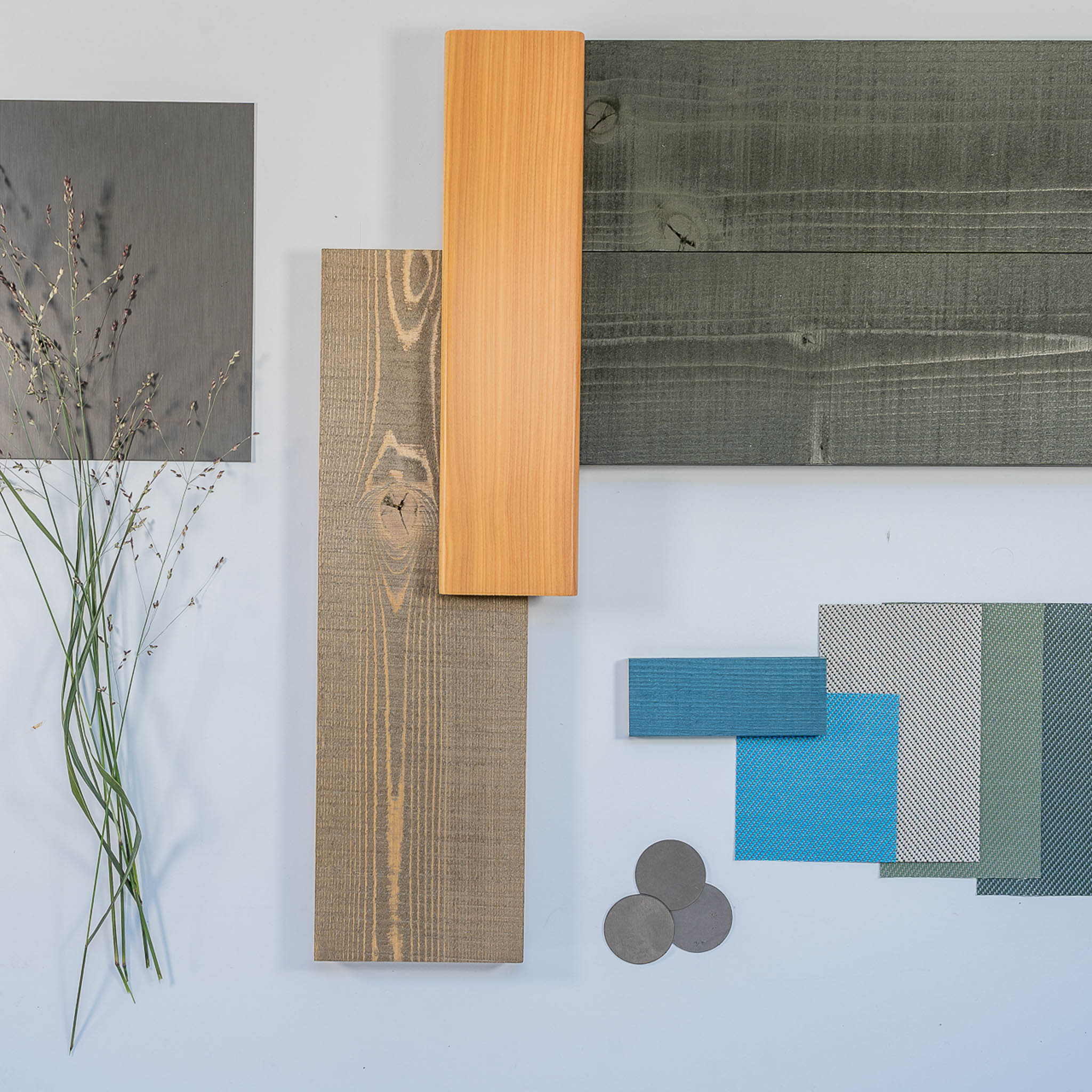 Hlavním prvkem této kolekce jsou hladké smrkové omítané desky natřené lazurou Lignovit Platin v barevném odstínu Sonorabraun - ten je kombinací hnědé, černé a šedé s jemnými kovovými odlesky. Další odstín Nascagold má zlatavý nádech, který však díky svému šedému podtónu nepůsobí zbytečně kontrastně. Zemité červené tóny, jako je odstín Thulitrot, pro zvýraznění kontrastních prvků nebo červené zinkové plechy, završují celý design této kolekce.