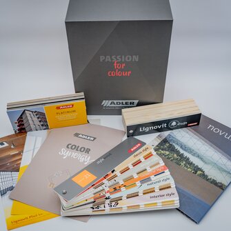 ADLER box pro architekty obsahuje všechny důležité nástroje, které architekt potřebuje pro plánování a poradenství v oblasti barev a povrchových úprav dřeva. Najdete v něm například barevné vzorkovnice s povrchovými úpravami dřevěných fasád nebo moderní odstíny na dřevěné obložení v interiéru, ale také široký výběr odstínů na dřevěná a dřevohliníková okna a prospekty k nejdůležitějším produktům. Jste architektonické studio a dlouhodobě pracujete s našimi produkty? Kontaktujte svého obchodního zástupce ADLER a vyžádejte si ADLER box pro architekty ještě dnes. Dle specializace Vaší kanceláře Vám vzorkovnice do boxu sestaví přímo na míru!