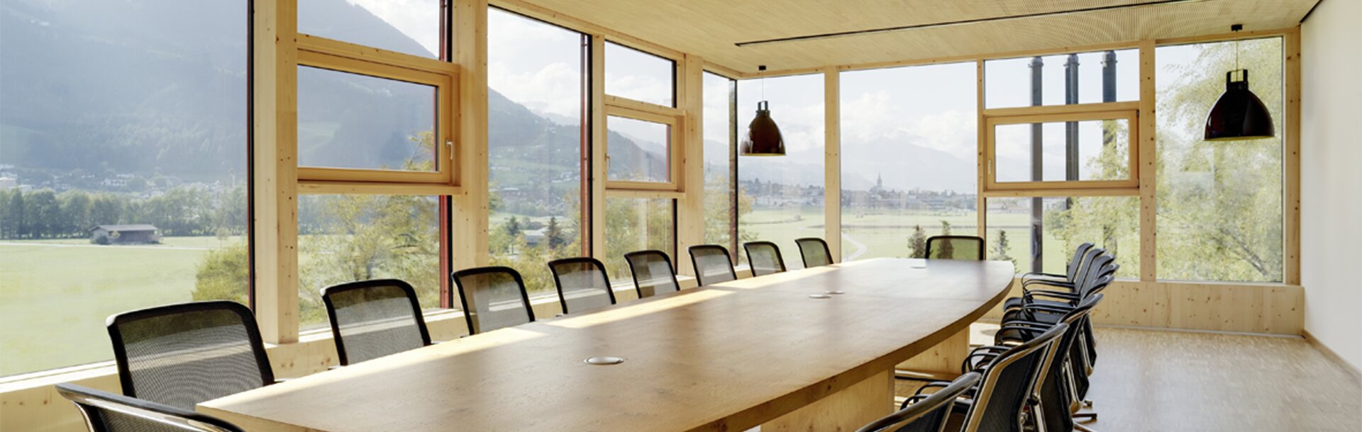 Tady se dělají rozhodnutí, tady vznikají nápady, zde je budoucnost firmy již přítomností: třetí patro správní budovy ve Schwazu pojímá místnosti jednatelů, velký zasedací sál s pohledem na okolí kolem dokola a kanceláře finančního a účetního oddělení. „Měla vzniknout správná atmosféra pro vize budoucnosti a přesnost, tedy perfektní pracovní místo“, říká Claudia Berghofer, která koordinovala a společně s architekty plánovala výstavbu s velkou láskou k detailům. „Proto bylo naším přáním hodně světlosti a hodně dřeva – nejpřirozenější ze všech surovin a každodenní chléb všech zaměstnanců firmy ADLER. Kromě toho jsme si nechali dát tipy a podněty také od poradkyně feng-shui.“