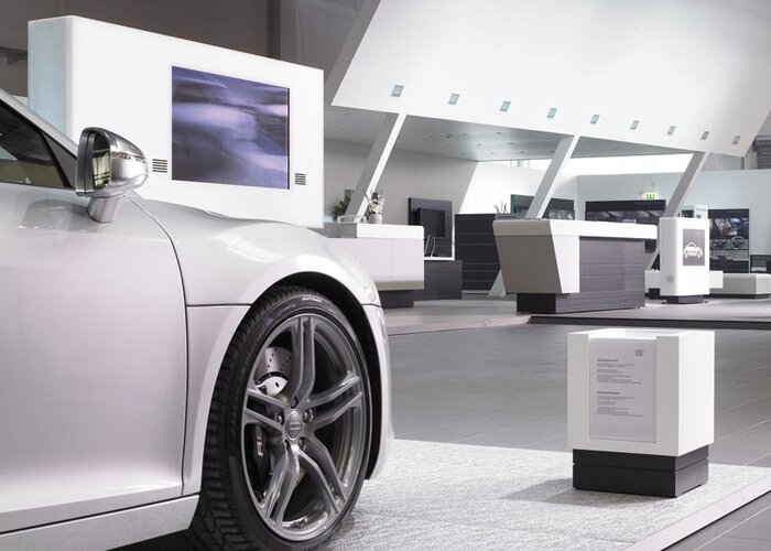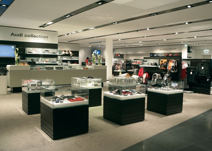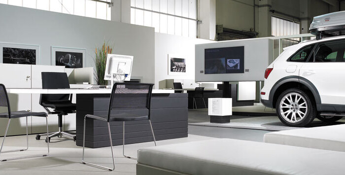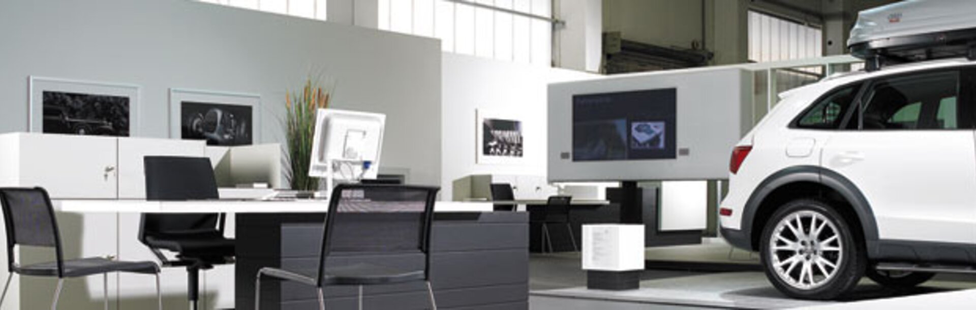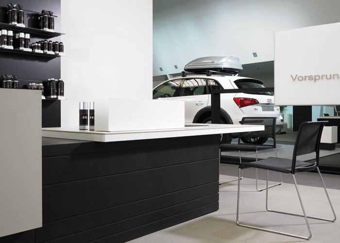 K zajištění jednotného vzhledu značky Audi a efektu znovupoznání po celém světě mají od roku 2006 všechny prodejní prostory jednotný vzhled. Říká se tomu modulární Counter-System. To má znamenat: Návrháři interiérů společnosti Audi mají muka volby. "Existuje bezmála 100 jednotlivých nábytkových modulů - ty umožňují flexibilní sestavy, podle velikosti a potřeb konkrétního prodejce", vysvětluje Thomas Rieder, vedoucí výroby Voitova podniku. Od pohovek přes kancelářská pracoviště nebo prodejní pulty až po pulty na občerstvení: Jeden vzhled pro všechny prodejní prostory, ať jsou v Mnichově nebo v Minsku.