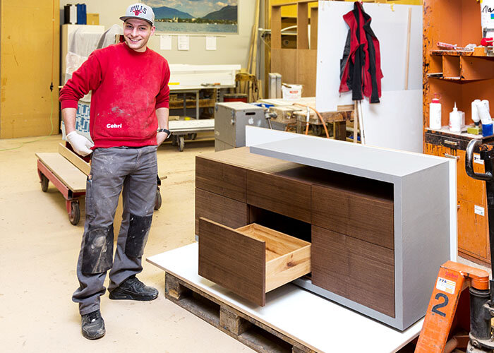 Mám rád svoji práci a neustále se zajímám o nové věci. Takto o sobě mluví Fabian von Dach, učeň druhého ročníku ve švýcarské společnosti Gehry AG – obor plánování a výroba bytového zařízení. Má pravděpodobně ty nejlepší předpoklady k tomu, stát se dobrým truhlářem, a také se zúčastnit soutěže s vlastnoručně vyrobeným kusem nábytku, který sám navrhnul. Na učňovské soutěži mistrů truhlářského spolku v kantonu Bern představil Fabian stylový "příborník v betonovém orámování".