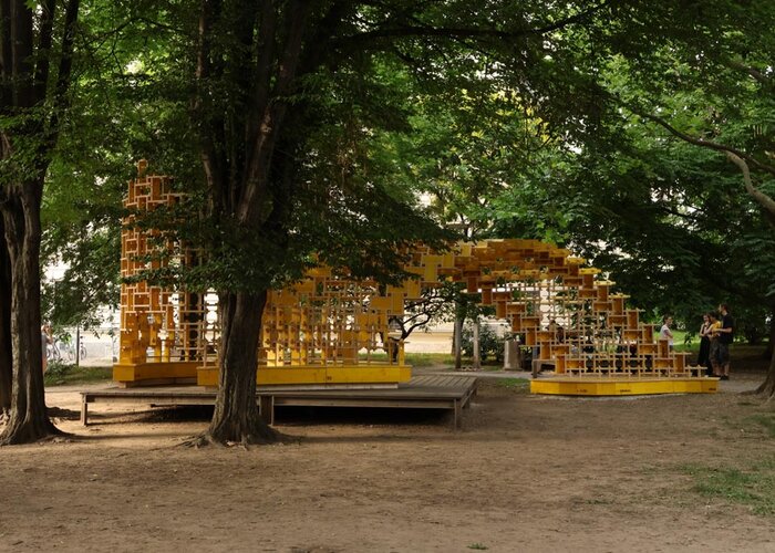 Studenti z Institutu architektury a médií (IAM) na Technické univerzitě ve Štýrském Hradci postavili ve Starém technologickém parku ve Štýrském Hradci působivý monument v podobě Möbiova pásu
