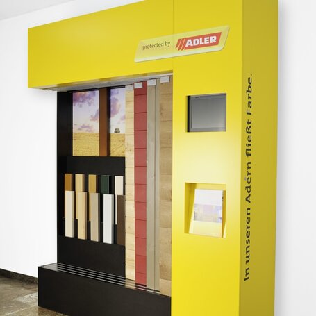 S prezentačním panelem Protected by ADLER se výběr oken stává skutečným zážitkem. Je tu prostor nejen pro různé vzorky okenních profilů s různými povrchovými úpravami, ale lze je také kombinovat i s různými povrchy fasád. S těmito prodejními panely tak může kompletní konzultace k nákupu oken proběhnout přímo v showroomu prodejce. Zákazník vidí, jak bude okno ladit k fasádě jeho domu a především si může "osahat", jaký bude skutečný povrch jeho nového okna. V tu chvíli již u zákazníka nerozhoduje pouze cena oken, ale celkový dojem - protože dřevěná okna „protected by ADLER“ si prostě zamiluje.