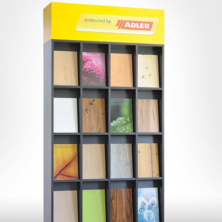 Tento panel byl speciálně navržen tak, aby ukázal zákazníkovi mnoho vzorků povrchových úprav na co nejmenším prostoru. Celkem 16 vzorků ve formátu A4 lze vystavit v panelu širokém jeden metr a vysokém dva a půl metru. Ve spodní části navíc je navíc mnoho posuvných přihrádek na další předměty a vzorky. Panel lze umístit buď ke stěně, nebo použít jako volně stojící prvek. Na výběr jsou navíc dva různé motivy zadní stěny.