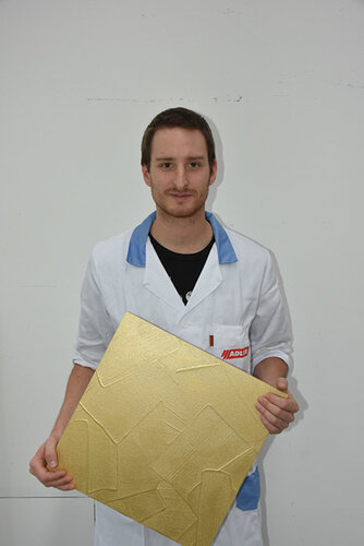 Není všechno zlato, co se třpytí. Občas je to i dřevo. Dřevo, které bylo zušlechtěné novým metalickým efektem betonu od společnosti ADLER, může zářit v nejkrásnějších metalických odstínech na nábytku i v kuchyni. Technik Dominik Schwaiger ze společnosti ADLER vám ukáže krok za krokem, jak vytvořit lesklou, kovově třpytivou směs betonu a zlata.