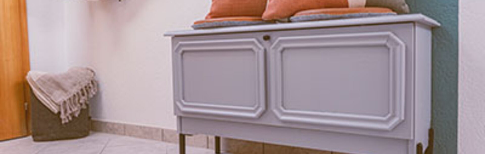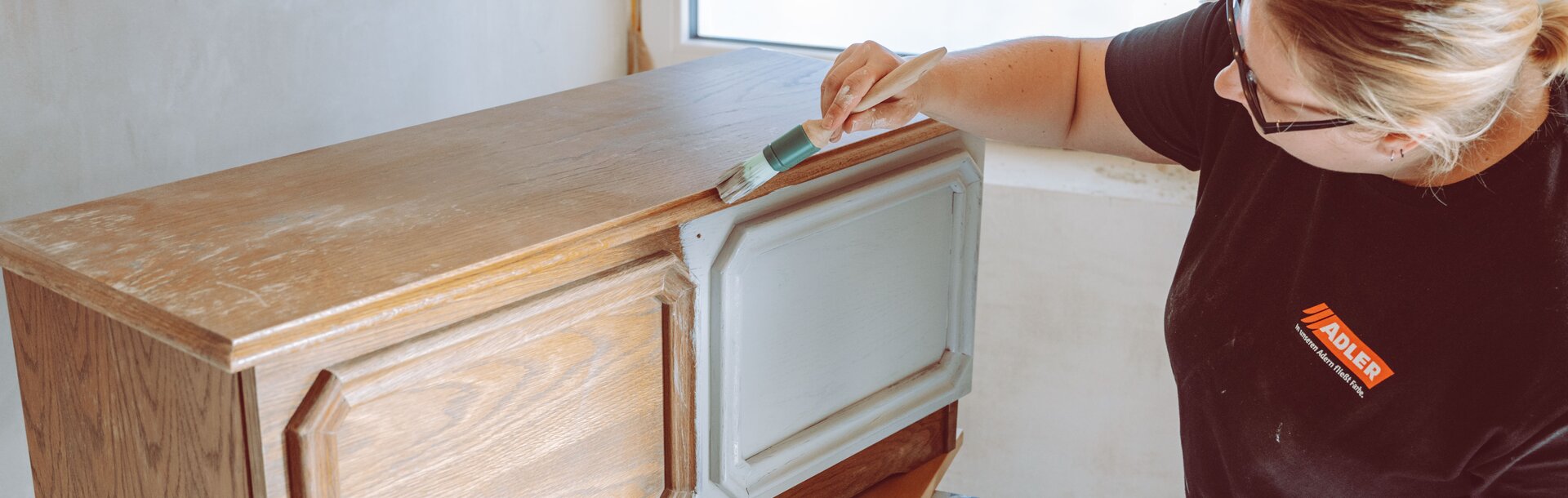 Náš tip: Nové nohy a úchytky dodají nábytku jiskru. Původní úchytky ale můžete také přetřít. Barva ADLER 5in1-COLOR totiž drží i na kovu. Pokud je kování již lakované, jednoduše jej nejprve očistěte odmašťovačem ADLER Entfetter a dvakrát nebo třikrát natřete vybraným odstínem barvy.