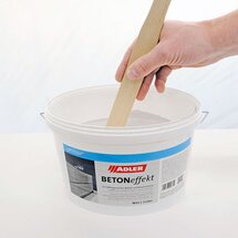 Obzvlášť důležitá je pro betonový efekt samotná příprava produktu: pečlivě promíchejte lak ADLER Betoneffekt pomocí míchacího dřívka ADLER. V žádném případě nepoužívejte elektrický míchač nebo podobné přístroje.