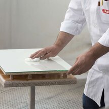 K dosažení efektu matného skla doporučujeme Bluefin Top-Antiscratch. Vysoce odolná 2K vrchní vrstva na povrchy nábytku je díky dokonalé chemické odolnosti vhodná i pro lakování skla. Smíchejte tento vodouředitelný lak s 10 % Aquafix S a 3 % Aqua-Crosslinker Vetro. Do směsi je třeba přidat 10 % tužidla Aqua-Hardener.