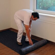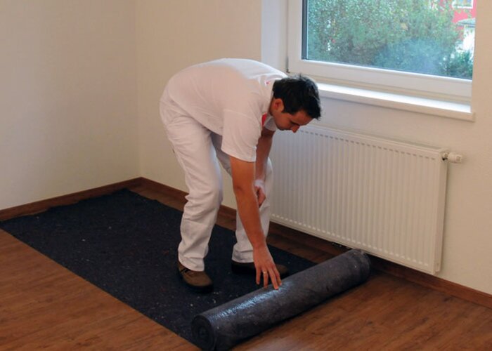 Všechno, co chcete ochránit před odstřikující barvou, by mělo být z místnosti odstraněno. Chraňte podlahu a základní desky malířským rounem a krycí fólií. -