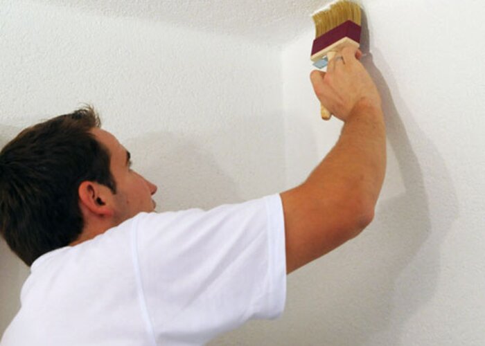 Vezměte štětec a nejprve natřete rohy a okraje kolem stropu.