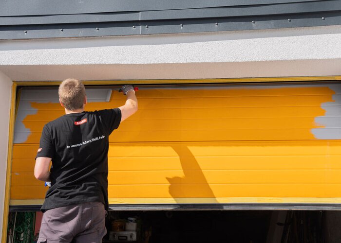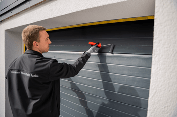 Potom můžete garážová vrata natřít podruhé s 2K-PU-Multilack. Po schnutí 8 až 12 hodin stará garážová vrata budou zářit jako nová.
