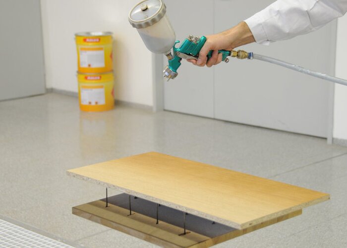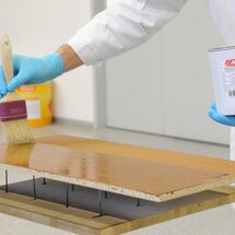 Legnofix rovnoměrně as nepatrným přebytkem nastříkat podél dřevních vláken.