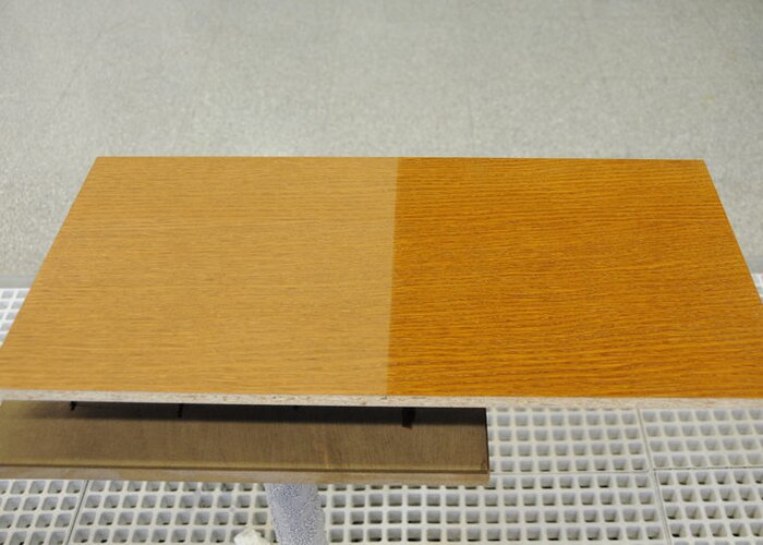 U hotových ploch není rozpoznatelný žádný rozdíl mezi fixovanou a nefixovanou polovinou. Neviditelný účinek: Legnofix navázal barviva mořidla na dřevní vlákna, a tak zajistil odolnost vůči vodě.