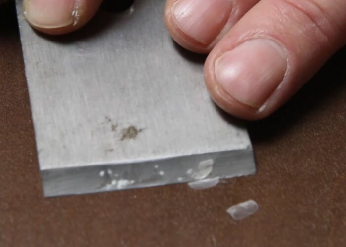 Vyplňte důlek tvrdým voskem Grilith "bezbarvý": rozpusťte kousek voskové tyčinky tavičkou tvrdého vosku a nechte požadované množství nakapat na poškozené místo.