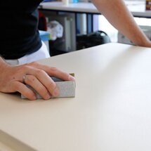 Staré nátěry obruste excentrickou bruskou s brusným kotoučem o zrnitosti P 220. Tak dosáhnete čistého podkladu. Plochu zbavte brusného prachu!