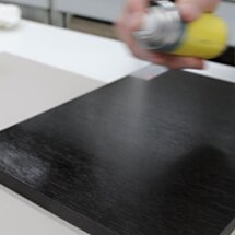 Následuje lakování povrchu transparentním lakem ve spreji ADLER Grilith Klarlack-Spray ve vybraném stupni lesku . V závislosti na podkladu a na požadovaném vzhledu je lak k dispozici ve 3 stupních lesku: lesklý, pololesklý a matný. Nádobu s lakem nejprve důkladně protřepejte asi po dobu 2 minut. Při stříkání držte plechovku vždy svisle k povrchu. Stříkejte přibližně ze vzdálenosti 25 cm při pokojové teplotě rovnoměrně a ne příliš silně na určené místo.