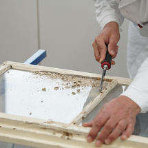 Odstraňte starý tmel z vymontovaného okenního křídla. Sklo je nejvhodnější nechat odstranit odborníkem.